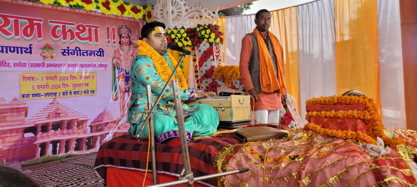 महराजगंज जौनपुर।क्षेत्र के सवंसा हनुमान मंदिर के प्रांगण में चल रही पंचदिवसीय लोक कल्याणर्थ संगीतमय श्री राम कथा का आज शुक्रवार के दिन विश्राम हुआ कड़ाके की ठंड में भी हनुमान मंदिर का पूरा प्रांगण कथा प्रेमियों से खचाखच भरा था। कथा व्यास नीरजानंद शास्त्री एवं शिवम जी महराज द्वारा अमृतमय श्री राम कथा का रसपान कराया गया तथा अंत में आरती और प्रसाद का वितरण किया गया। इस मौके पर निवेदक भाजपा मंडल अध्यक्ष यादवेंद्र प्रताप सिंह लवकुश द्वारा सभी अतिथियों का स्वागत एवं सम्मान किया गया हनुमान मंदिर पुजारी श्याम शंकर उपाध्याय द्वारा कल होने वाले भंडारे में महाप्रसाद ग्रहण करने कि लोगों से अपील की गई।