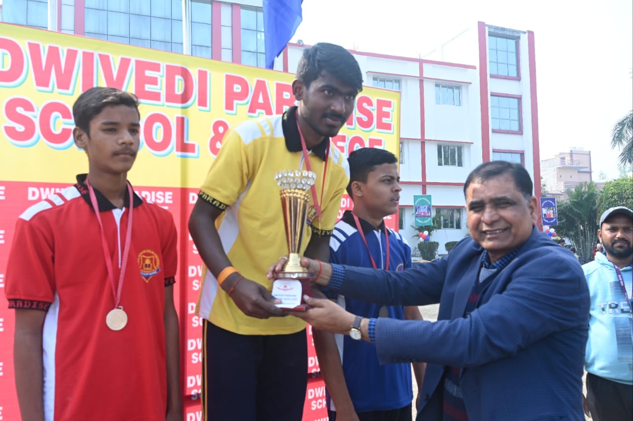 उत्कृष्ट प्रदर्शन करने वाले खिलाड़ियों में समीर ,राहुल पाल ,शुभम पटेल, अंकित यादव, विकल्प शुक्ला ,ओम पांडेय, अब्दुल हाफिज, आर्यन पांडेय, आर्य तिवारी, आंचल, रेखा पांडेय, निर्मित पांडेय, अंकित, आदित्य ,सतीश ,शरद सिंह अजय कांत तिवारी ,शिखा, काव्या व अय्याश पांडेय को मुख्य अतिथि जिला जज पवन तिवारी फिरोजाबाद, विशिष्ट अतिथि डिप्टी कमिश्नर रमेश सिंह व संस्थापक चंद्रकांत द्विवेदी, डायरेक्टर प्रभाकर महराज व प्रधानाचार्य मनीष मिश्रा ने संयुक्त रूप से छात्र छात्राओं को प्रशस्ति पत्र व मेडल देकर सम्मानित किया।