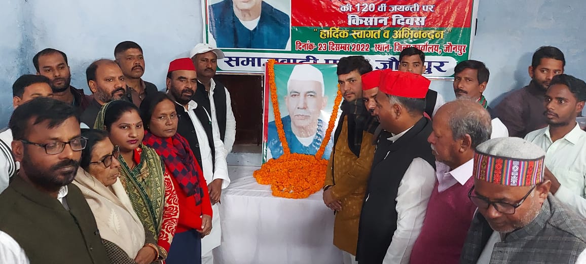 जौनपुर समाजवादी पार्टी कार्यालय पर जिलाध्यक्ष लालबहादुर यादव के अध्ययता में पूर्व प्रधानमंत्री चौधरी चरण सिंह के 120 वीं जंयती समारोह के अवसर पर उनके चित्र पर पुष्पांजलि अर्पित कर मनाया गया चौधरी चरण सिंह के जीवनी पर प्रकाश डालते हुए लाल बहादुर यादव ने कहा चौधरी चरण सिंह भारत के गृहमंत्री उपप्रधानमंत्री और दो बार उत्तर प्रदेश के मुख्यमंत्री भी रहे