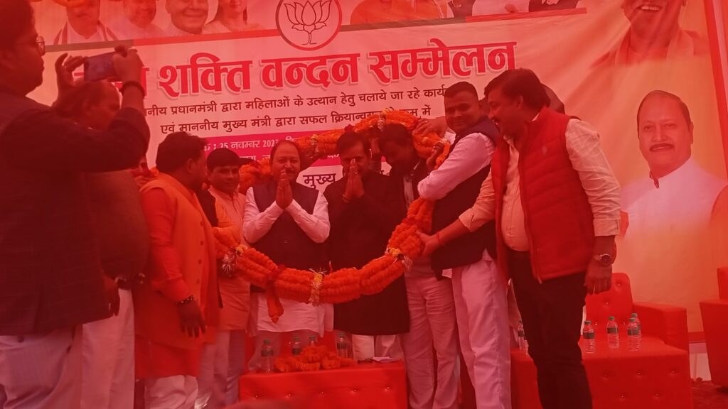 वही नारि शक्ति वंदन कार्यक्रम को आगे बढ़ाने के लिए कैबिने मंत्री अनिल राजभर ने जब कार्यक्रम में आये हजारो की संख्या में महिलाओ का आभार प्रकट किया और *भारत माता के जयकारे* के साथ अपने इस बात को आगे बढ़ाया भारत सरकार की योजनाओं से जुड़े कार्यो को बताया वही स्वयं सहायता समूह में इस समय उत्तर प्रदेश में दस लाख महिलाओ ने जुड़ कर इस योजना का लाभ उठाया जिससे आज घर पर बैठी पढ़ी लिखी महिलाएं भी रोजगार पा चुकी है सरकार फ्री में मिल रहे राशन को आगे भी देने का निर्णय लिया कहा किसी भी गरीब को पांच साल तक भूखे पेट नही सोने दिया जाएगा जिसका लाभ आज के समय मे गरीबो के घर घर मिल रहा है। मछली शहर लोकसभा सांसद बी पी सरोज के बारे में भी कैबिनेट मंत्री ने अपने संबोधन में कहा कि आज के समय मे ऐसे सांसद मिलना सौभाग्य की बात है जो कि मैंने देखा है। वाराणसी के सर्किट हाउस में मुख्यमंत्री योगी आदित्यनाथ की बैठक चल रही थी जिसमे सांसद बी पी सरोज ने खुल कर अपने बातो को रखा कहा कि मुख्यमंत्री महोदय अगर मेरे लोकसभा की जनता के समस्या का निदान मैं नही कर सकूंगा तो मेरा सांसद होना बेकार है इसके लिए आप को मेरे लोकसभा मछली शहर की समस्या को दूर करने के लिए उन कार्यो को कराना ही पड़ेगा इस बातो को सुन कर मुख्यमंत्री योगी आदित्य नाथ काफी प्रशन्नता जाहिर करते हुए कहा कि सांसद इस तरह होना चाहिए जिससे जो अपने लोकसभा के लिए लड़ कर सरकार से कार्यो को कराए इस बात को सुनकर जनता ने सांसद का तालियों से मनोबल बढ़ाया इस कार्यक्रम में भाजपा मंडल अध्यक्ष सहित तमाम वरिष्ठ नेता मौजूद रहे।