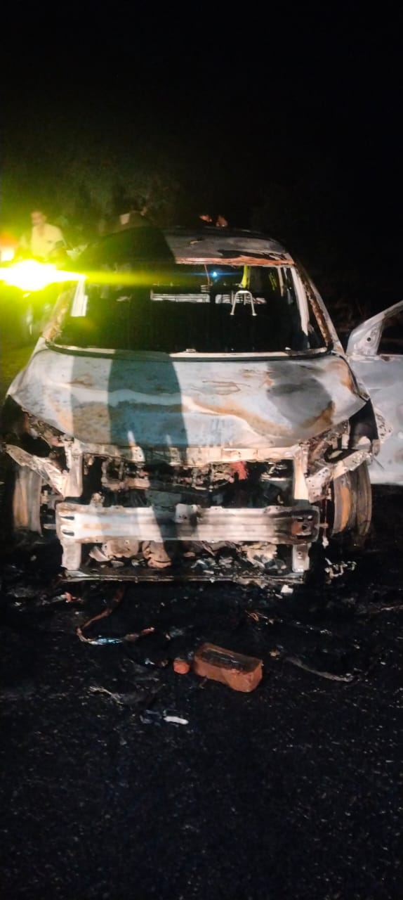 पुलिस ने वाहन के अवशेषों को कब्जे में लेकर जांच शुरू कर दी है।