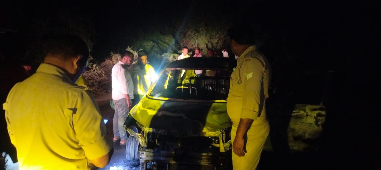 पुलिस ने वाहन के अवशेषों को कब्जे में लेकर जांच शुरू कर दी है।