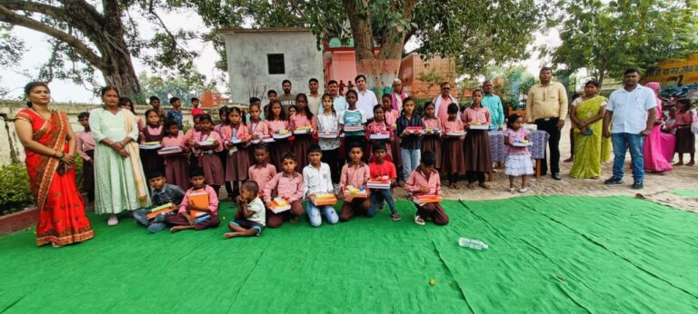 प्राथमिक विद्यालय में बच्चों को बांटी गई 75000 की स्टेशनरी —-